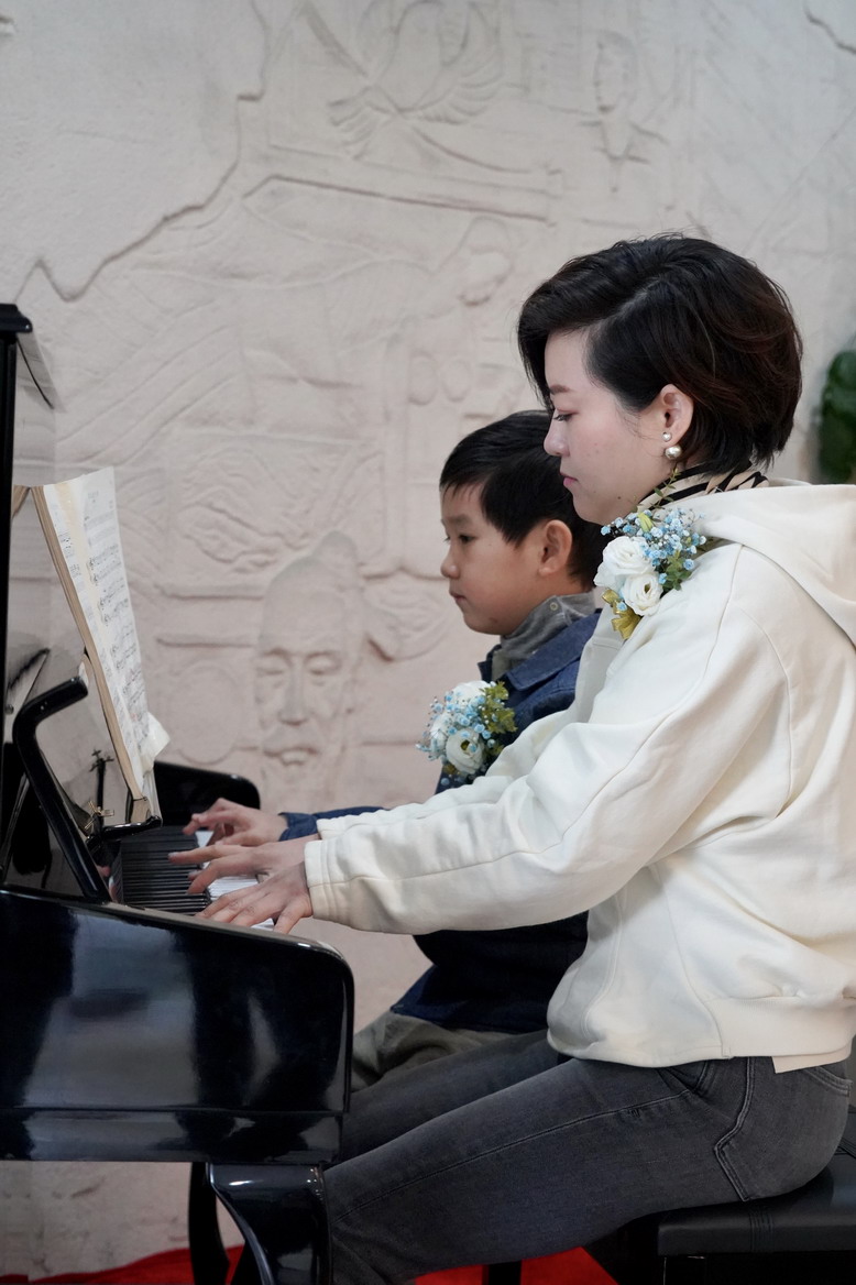 有一位白白凈凈的小男生和他漂亮的媽媽一起走上舞臺,兩人一起表演四手聯彈,讓觀看的學生還有家長連連贊嘆,他來自融合部二年級的趙宗然,小小的身體里有著大大的能量,也許是身旁有了媽媽的陪伴,表演時的他有著強大的自信心。趙宗然的媽媽在知道學校開展這類活動后也是大力支持,陪著兒子練習,督促孩子能夠勇敢展示自己。就是這樣的一種精神下,小小的趙宗然才學琴3年,就已經得到了不少比賽獎杯。
