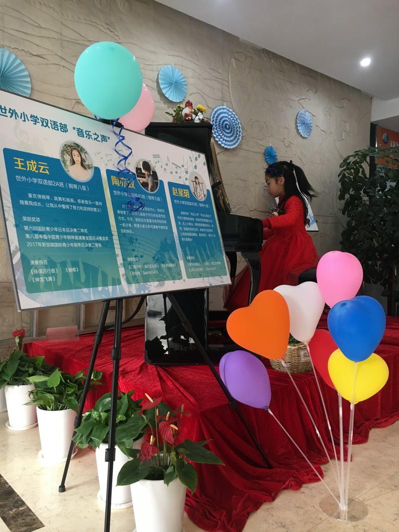 每個(gè)單周的周一早上,有個(gè)小小的音樂會(huì)在我們校園舉行,“演奏家”們來自于雙語部的音樂愛好者,他們拿出各自的看家本領(lǐng),在這方小舞臺(tái)上秀上一秀。不論是什么級(jí)別的演奏程度,只要能勇于站上舞臺(tái),我們“音樂之聲”都會(huì)歡迎你!