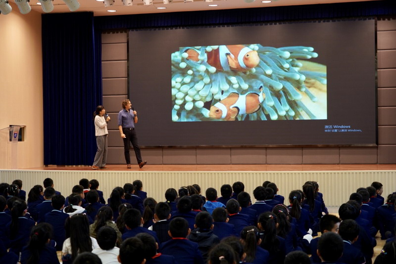 在交流會上,他用簡單易懂的語言配合生動的圖片,向三、四年級的孩子們闡釋了有關(guān)生命起源的一些科學(xué)發(fā)現(xiàn)和許多有趣的事實(shí)。