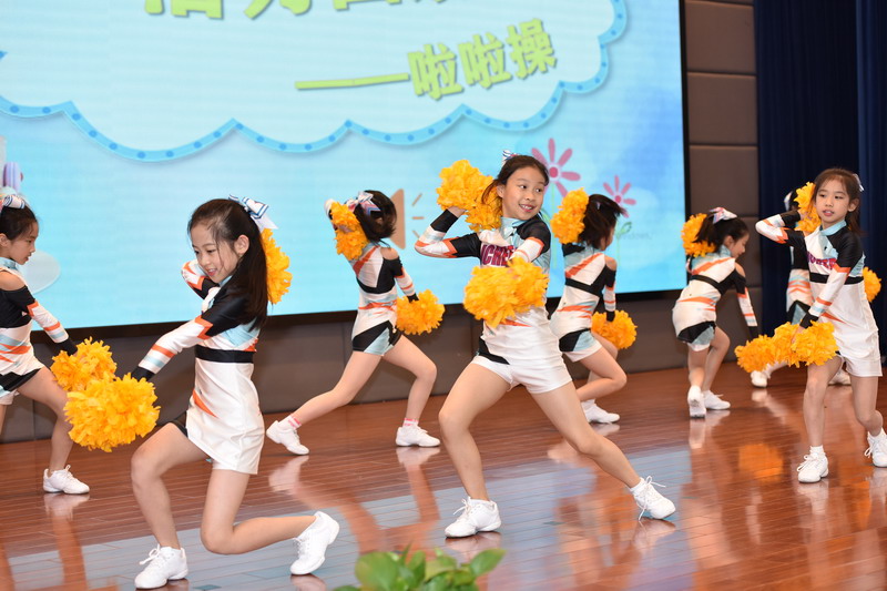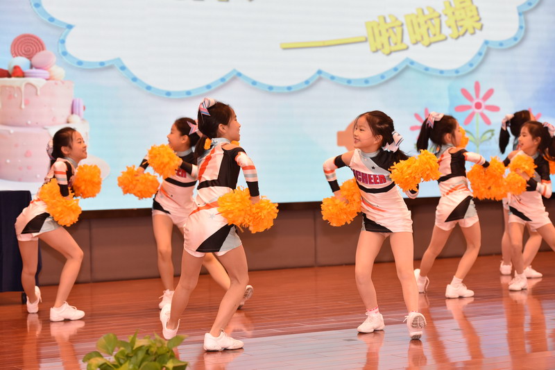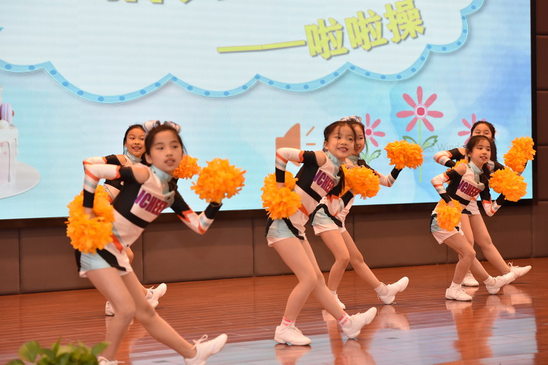生日會(huì)在一段陽光而歡快的啦啦操表演中隆重拉開帷幕。這群三年級(jí)女孩前不久剛在區(qū)學(xué)生陽光體育啦啦操比賽中榮獲一等獎(jiǎng)。