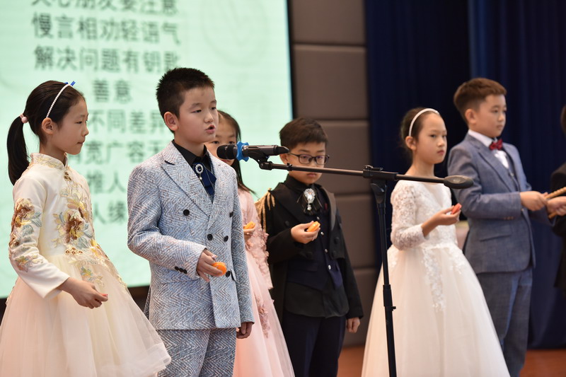 誰說少年不知愁?十歲孩子的煩惱是那么的真實(shí)。十個(gè)孩子打著快板走上舞臺(tái),表演“三句半”《我的成長不煩惱》。他們既生動(dòng)地說出了自己在時(shí)間管理、朋友交際、親子溝通等方面的煩惱,又說出了積極應(yīng)對(duì)的辦法。詼諧幽默的語言打動(dòng)了臺(tái)下的每個(gè)同學(xué),他們爆發(fā)出會(huì)心的掌聲和笑聲。