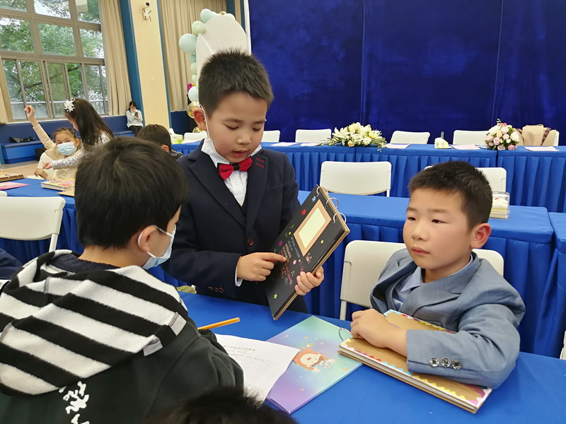 活動(dòng)最后,二年級(jí)的小朋友也來到了現(xiàn)場(chǎng)。孩子們拿出“I MY ME”小冊(cè)子和弟弟妹妹們分享了各自成長的經(jīng)歷,講述了自己的心情故事,回顧了不斷找尋自我過程中的快樂和煩惱。