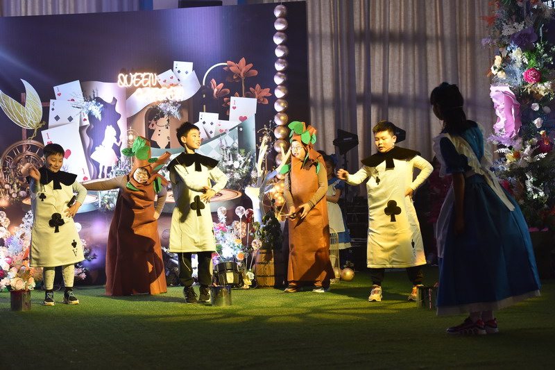 The reason why we choose the popular English Fair Tale is that we hope the children could be brave and naive just like Alice. The interaction between the people and the things around us is unpredictable. While we are on the growth path, we should keep exploring, and witness the miracles in the world.