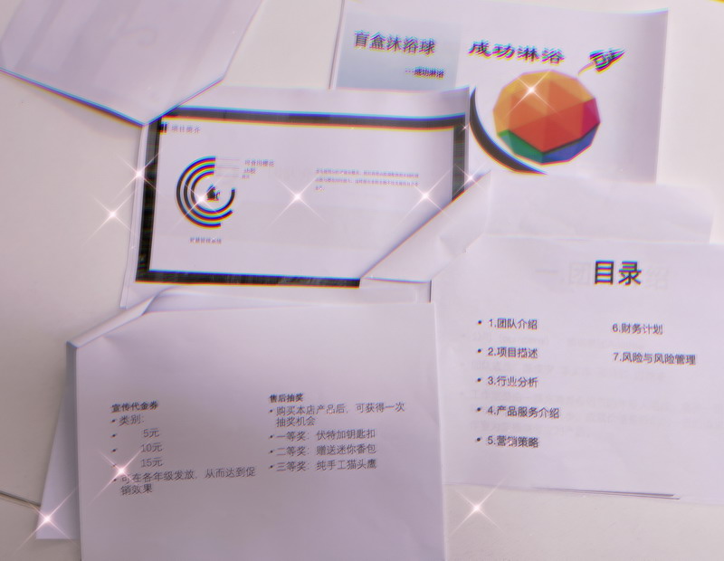 一起商議、撰寫的商業(yè)計劃書 The commercial plan after discussion.