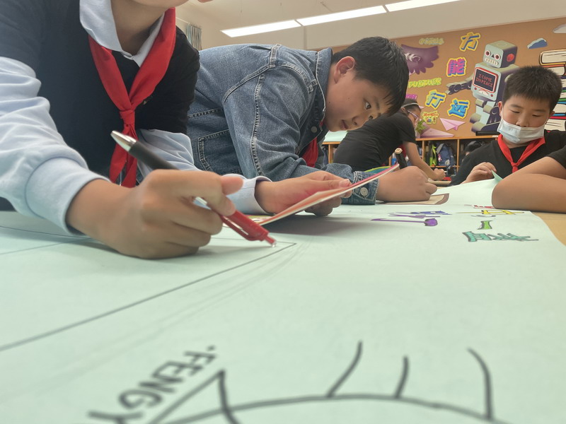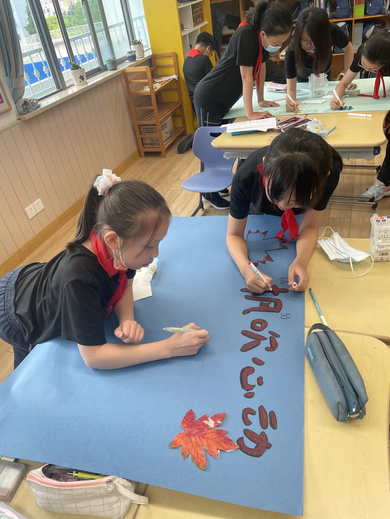 一起繪制宣傳海報Drawing the posters.
