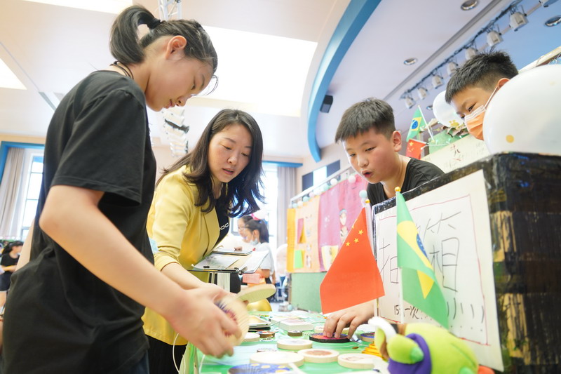 這次挑戰(zhàn)賽的形式是模擬國際貿(mào)易展銷會,每個展臺的產(chǎn)品設(shè)計都與各自的模聯(lián)代表國相關(guān)。The form of the competition is like International Trade Market. Each booth presents the design of the items of a rep country.