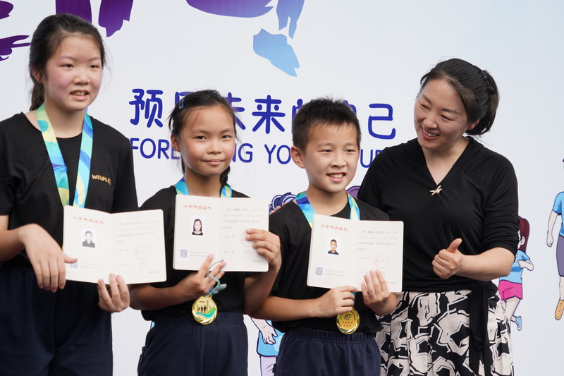 At the finish point, Principal Zhang and Principal Lu presented “Graduation Certificates” and “Orientation Badges” to each student. Everyone proudly accepted the awards as they had run and competed hard.