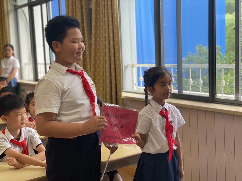 秦婉彤、姜允鵬說:“我祝你們快快樂樂,我希望我們的這一份心意能對你們有所幫助,讓我們一起為未來加油”。黃思然說:“雖然我們相隔千里,但是我們的心和你們在一起”。Qing Wantong and Jiang Yunpeng said, ‘We wish that you are all happy. We hope that our gift can help you to learn for the future.’ Huang Siran said, “Though we are thousands of kilometers away from each other, our hearts are with you.”