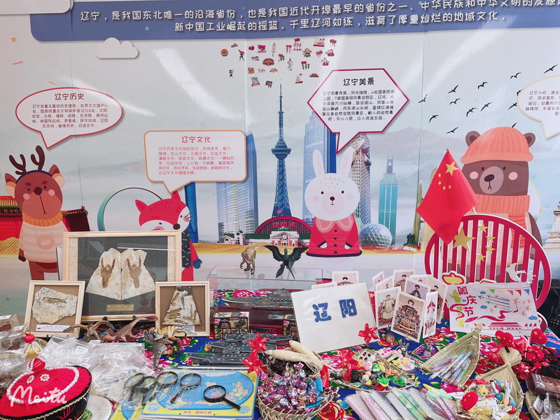 幾個穿著滿族、朝鮮族服飾的小朋友帶著大家一起在遼寧美食天地里盡情游覽。
