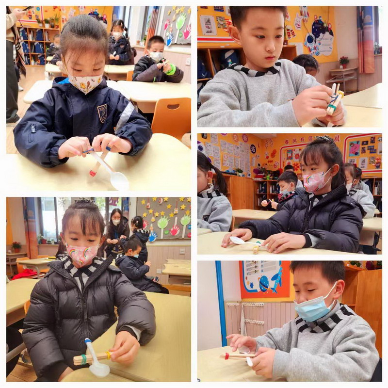 在本單元的學習中,一年級的孩子們認識了6種常見的簡單機械,即滑輪、杠桿、輪軸、楔子、斜面和螺旋。同時,他們還在老師的指導下完成了其中5種簡單機械的制作,當了一回小小機械工程師,實在是太了不起啦!