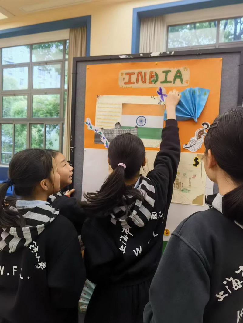 為了更形象地向大家介紹自己的國家,同學們還在老師的帶領下,用海報的形式將自己所代表的國家展示出來,供大家了解。