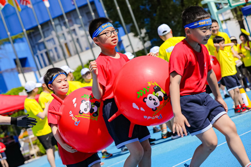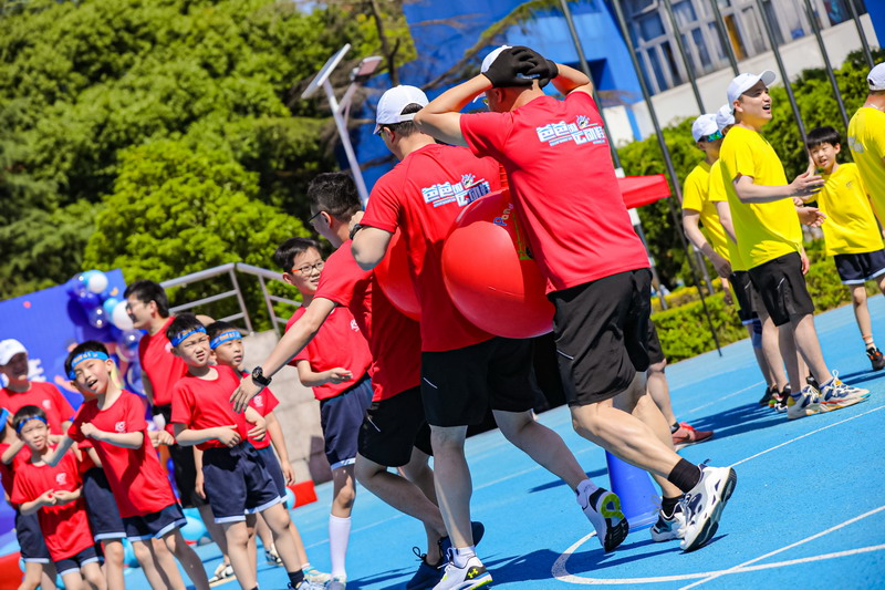 親子運動游戲環節將活動推向白熱化。6個Spark游戲,學生帶著爸爸體驗了日常體育課上運動的快樂;6個兒時游戲,爸爸則將孩子帶回他們的孩童時代。