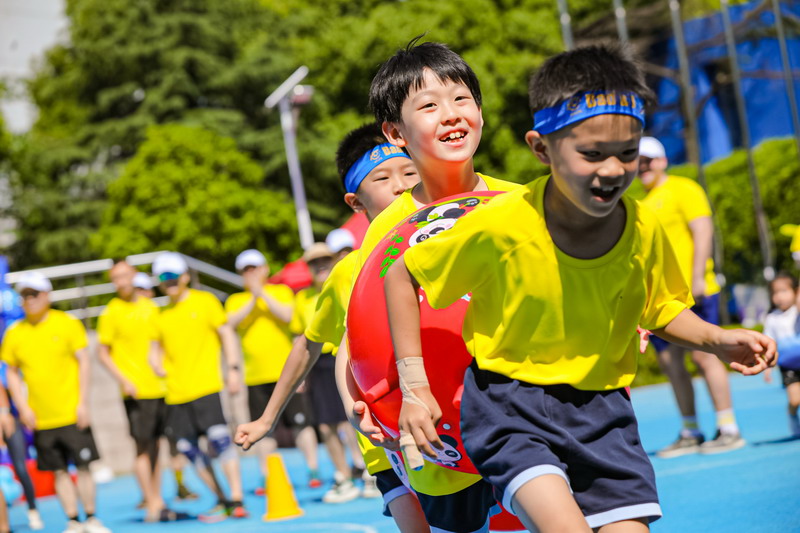 本次活動分團體競技類與親子互動游戲2大板塊。集體拔河不僅考核力量,也是考核團隊默契的運動。孩子們為參與拔河的爸爸們振臂吶喊,加油鼓勁。