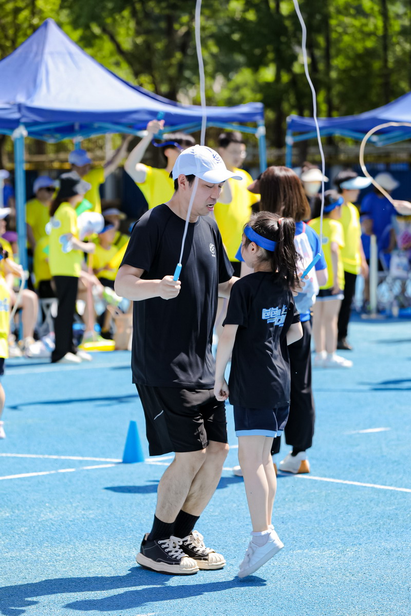 親子跳繩賽之前,孩子們和家長們就在家里苦練多日,今天一定要好好秀一把。通過親子跳繩,孩子與家長之間的感情得以升溫、信任得以提升。