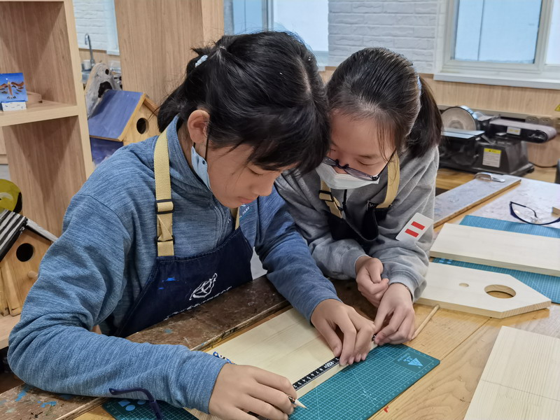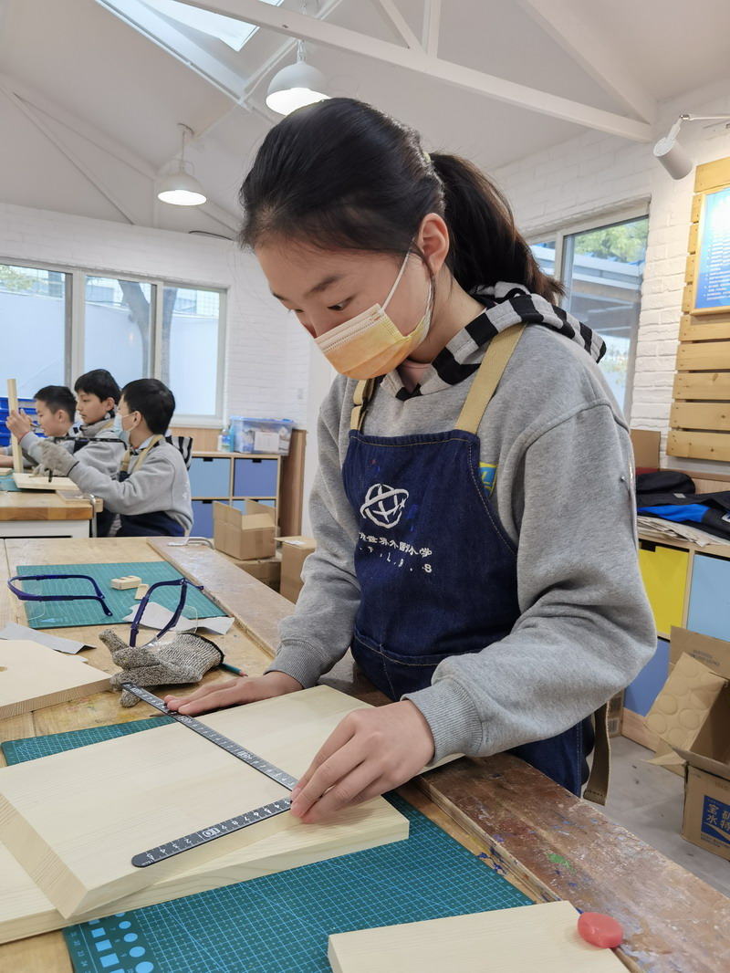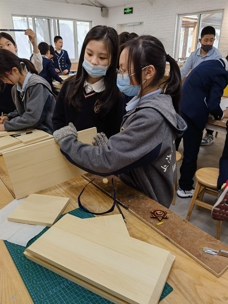 同學們兩人為一組,從測量、切割、打磨、組裝到涂色,都親手完成。