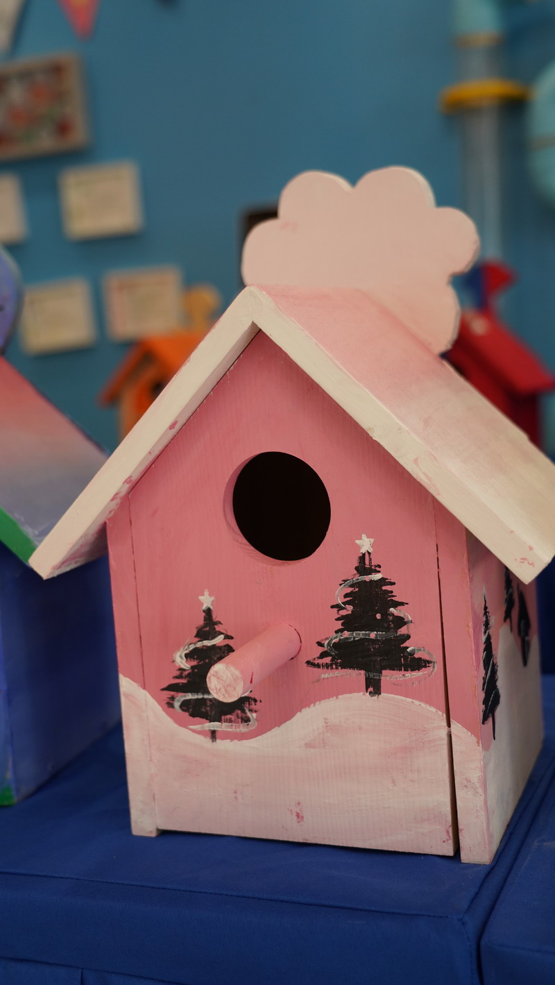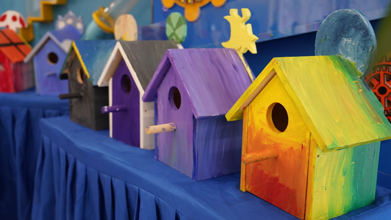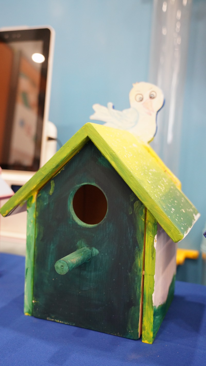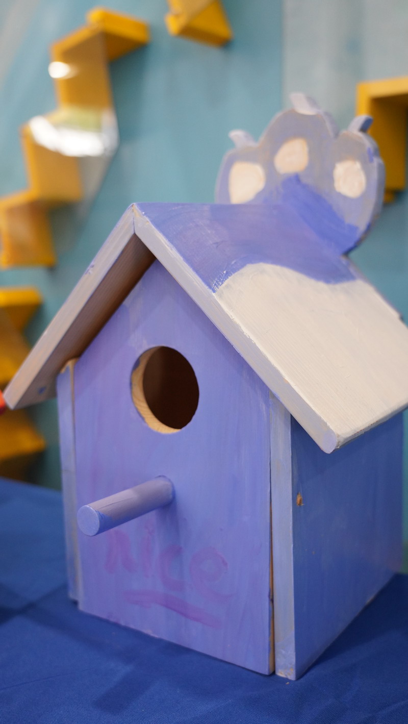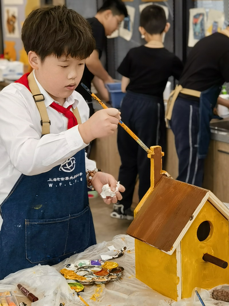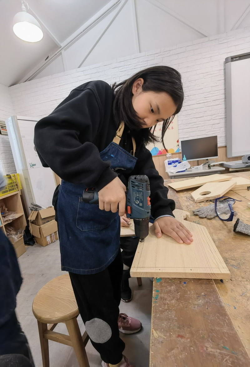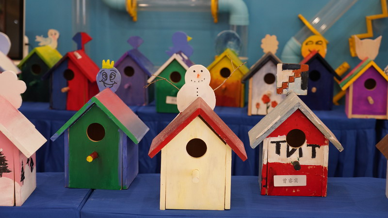 在打磨過程中,學生們仔細研磨每個木制零件,使其表面光滑平整,以便在組裝時更好地連接。最后,他們運用想象力和創造力,將鳥屋涂上豐富多彩的顏色,便于鳥兒們找到溫馨舒適的家。