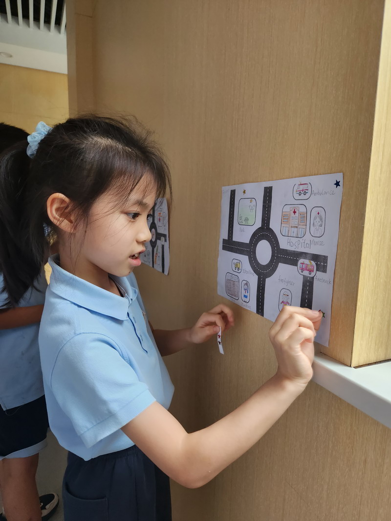 小朋友們在外教老師的帶領下認識社區里的人、地點和交通工具。通過討論和頭腦風暴,他們掌握了構成我們日常生活基礎的錯綜復雜的關系網。