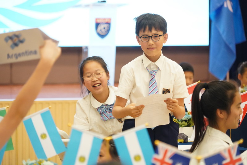 在世外小學模聯大會的舞臺上,雙語部五年級的學生們展現出了令人矚目的風采。經過前一階段對國家資料的深入搜集和精彩展示,他們馬不停蹄地投入到班級分會的緊張籌備中。 今年的模聯大會,我們聚焦了四個重要的主題:Ending poverty through education 教育--擺脫貧窮最有效的手段;Protecting endangered wildlife 保護瀕臨絕種的野生動物; Social inclusion for the elderly 多措并舉促進老年人的社會融入與發展;Food security 食品安全。