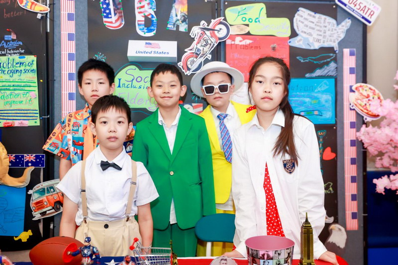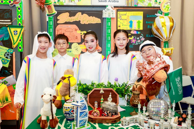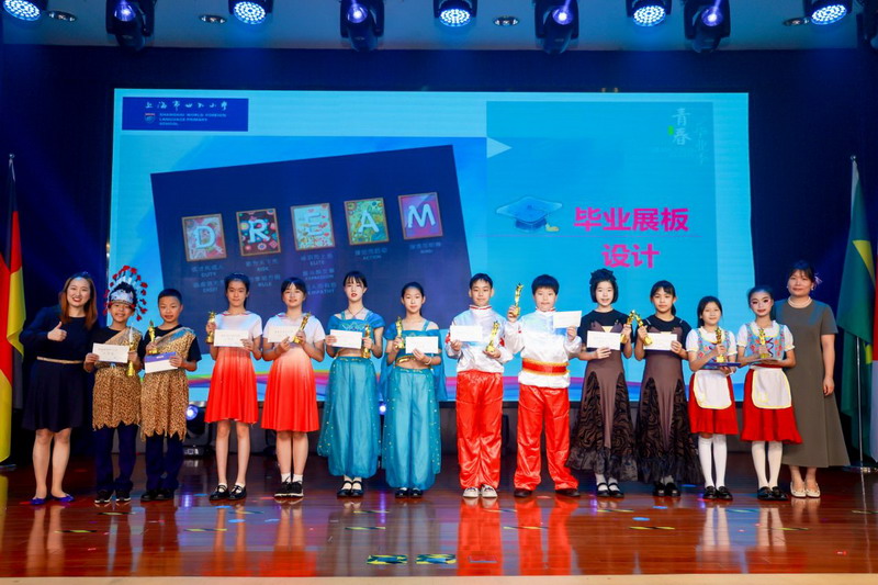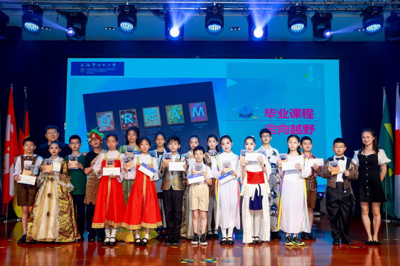畢業(yè)課程中,同學(xué)們領(lǐng)略了世界文化的博大精深,采擷了語(yǔ)言文字的趣味盎然。他們身著各國(guó)服裝,在精心設(shè)計(jì)的畢業(yè)展板前,向來(lái)賓介紹畢業(yè)課程取得的成果。