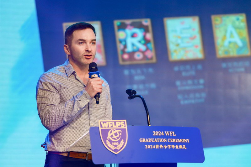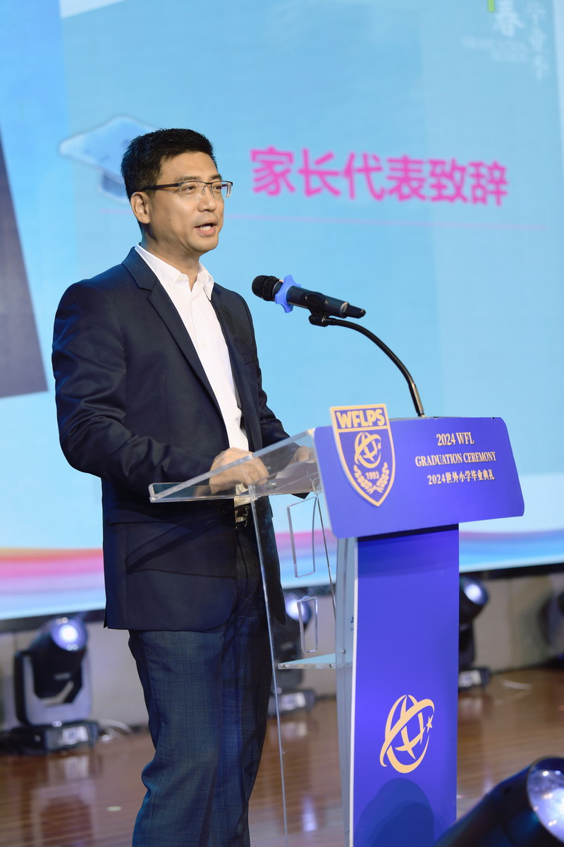 均瑤集團(tuán)董事長(zhǎng)王均金先生,世外小學(xué)校長(zhǎng)張悅穎女士致辭,希望同學(xué)們始終保持學(xué)習(xí)的熱情,擁有愛(ài)和共情,用世界眼、現(xiàn)代腦和中國(guó)心去擁抱美好的未來(lái)。常設(shè)家委代表封志剛先生也上臺(tái)發(fā)言,給予了同學(xué)們美好的祝福。