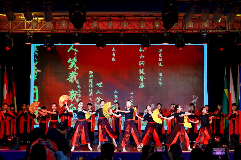 各國(guó)風(fēng)情的特色音樂(lè)聲中,全體五年級(jí)同學(xué)化身文化使者,翩翩起舞,他們用音樂(lè)和舞蹈展現(xiàn)了各國(guó)的文化與魅力。