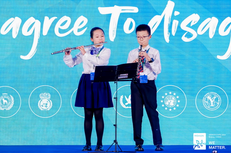 無論是面對復雜的會議流程,還是強勢的中學生對手,我們的小代表們始終全力以赴、隨機應變、團結協作,解決一個又一個難題,獲得了會場主席、負責人以及主辦方的高度認可。此外,兩位校樂隊的小代表還在代表舞會上獻曲一首!