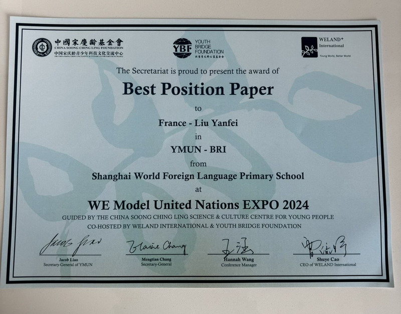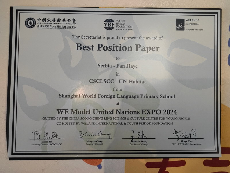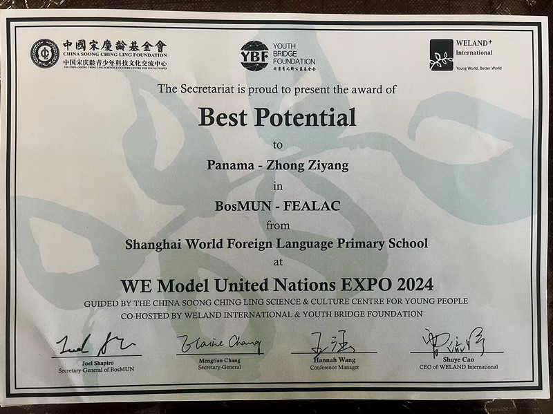 這次活動讓同學們開拓視野、積累經驗,也為學校今后更好地開展模聯活動做好準備。感謝幫助孩子們精心準備的老師,默默陪伴做好后勤保障的家長們,以及每一位有著“中國心、世界眼”的小代表們,感謝你們不懼挑戰,勇于表達,做更好的自己,是你們構建起更好的世外小學。