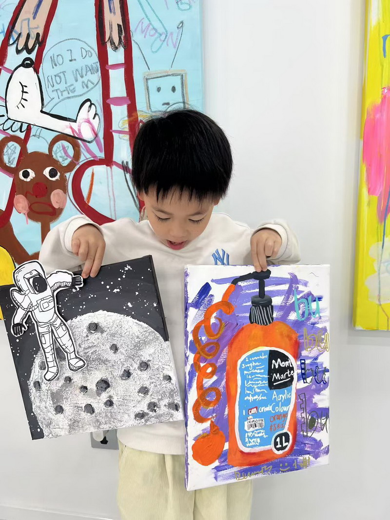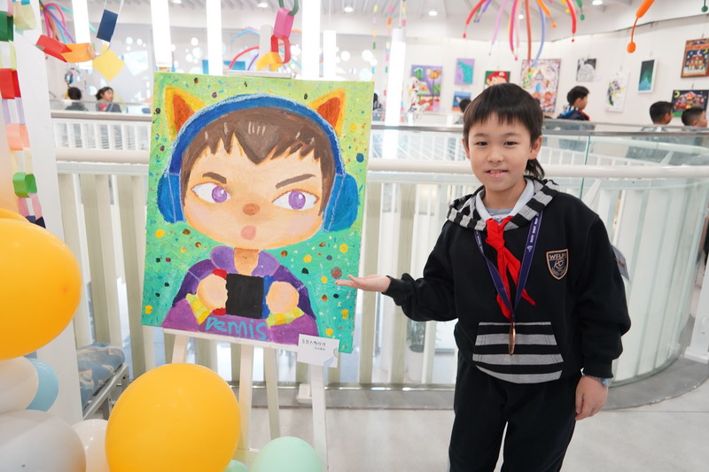本期畫展的主角,是雙語部四A班的謝銘峻同學。他用畫筆描繪童年的夢,用色彩點亮內心的激情,并通過本次展覽,向大家訴說他內心的“畫”語。