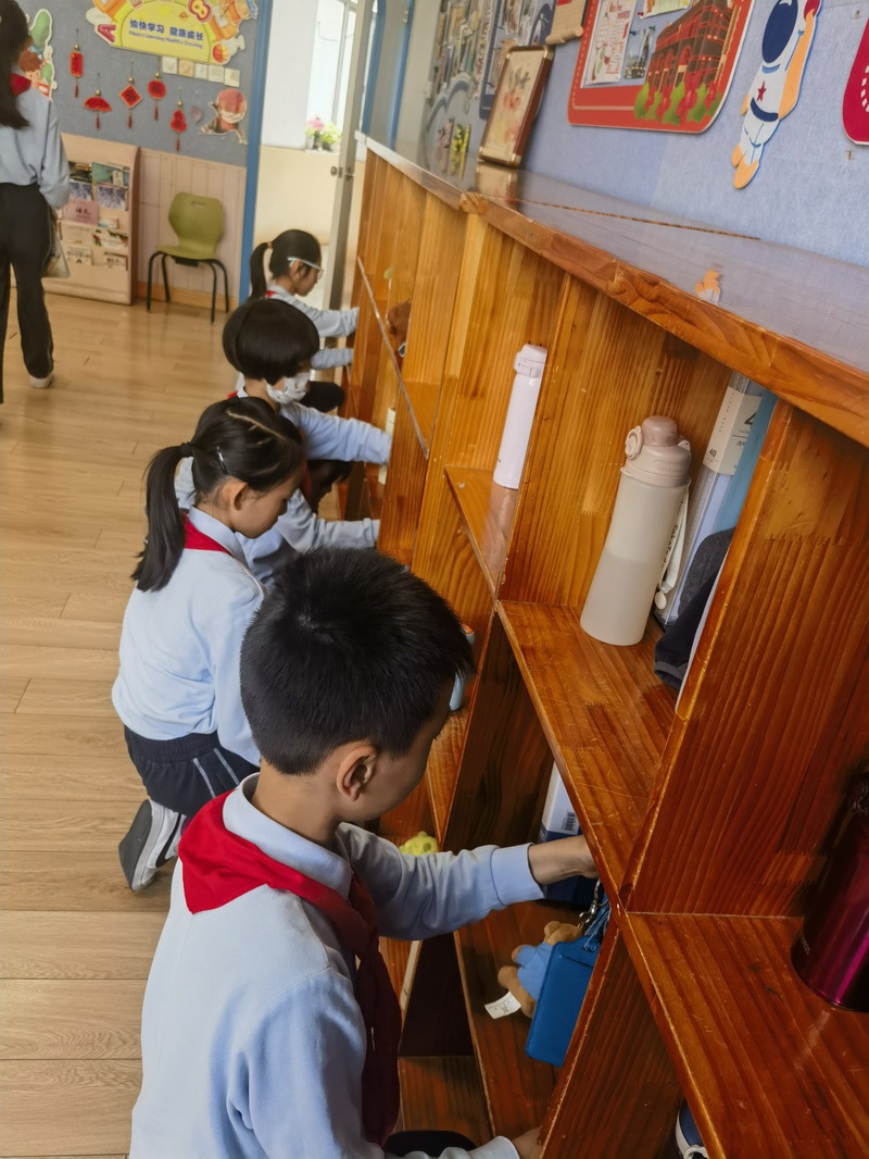 三年級的勞動實(shí)踐聚焦“我的空間我做主”。4月30日當(dāng)天,同學(xué)們認(rèn)真擦洗自己的課桌椅和儲物柜,用抹布拂去積塵,用消毒液擦拭邊角。掛放校服時,他們互相提醒“要對準(zhǔn)衣領(lǐng)”;系鞋帶比賽中,速度與美觀并重?;顒雍?,教室煥然一新,孩子們感慨:“原來保持整潔需要每天堅(jiān)持,勞動真的能讓人更珍惜環(huán)境!”