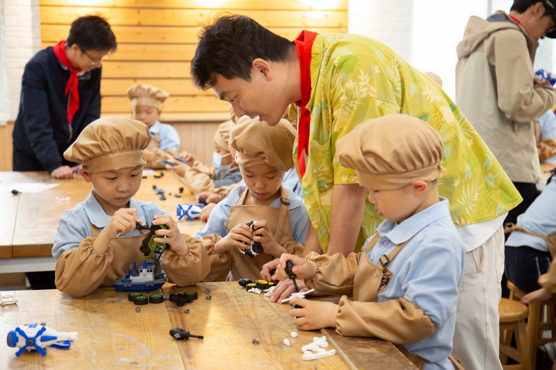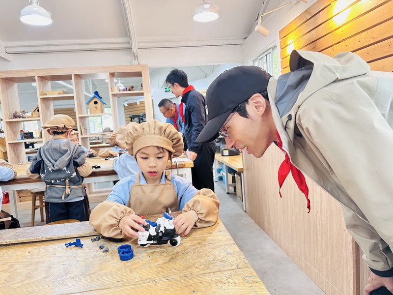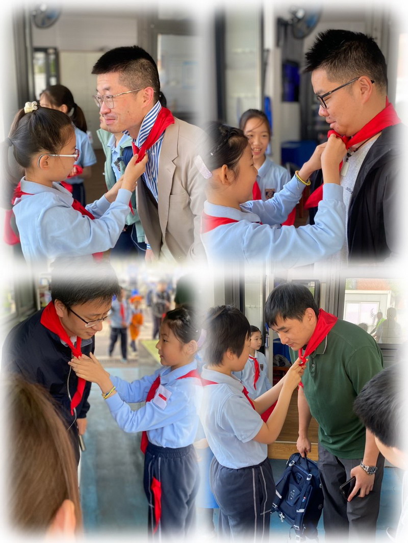 一大早,一年級的爸爸們穿上帥氣的衣服,早早地來到學校。少先隊員們也特別熱情,給每位爸爸戴上紅領巾,儀式感滿滿!這些爸爸們可不是來湊熱鬧的,他們可是帶著“絕活”來的。園丁爸爸、大廚爸爸、工程師爸爸、DT爸爸齊聚一堂,就像是一個“超級奶爸天團”,要給孩子們帶來一場超有趣的勞動大冒險。