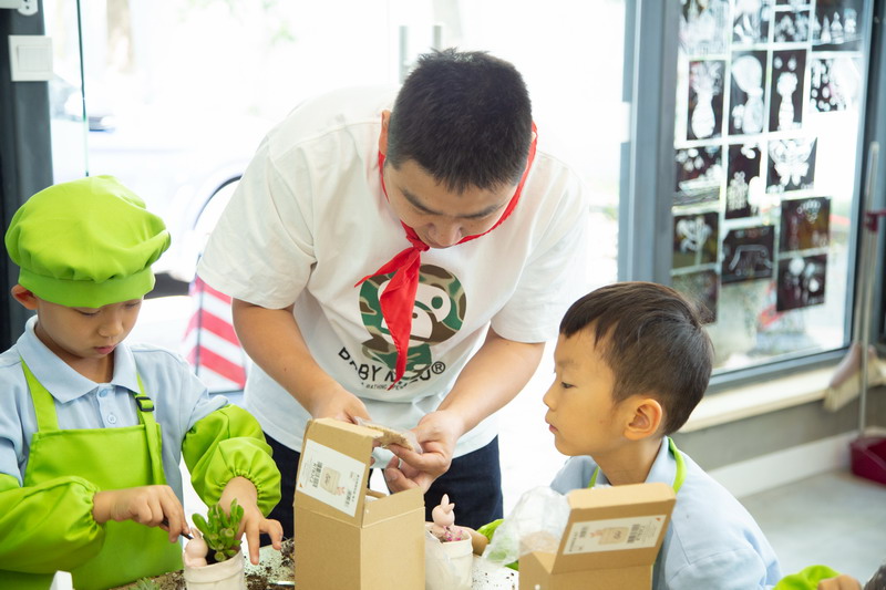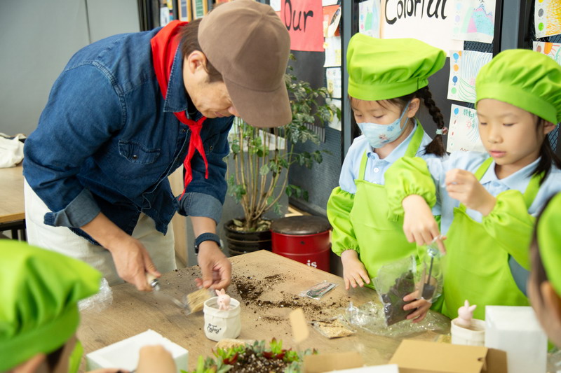 爸爸們的“勞動魔法秀” 園丁爸爸帶著孩子們,教他們怎么種花。孩子們拿著小鏟子,跟著爸爸一起種植、澆水。園丁爸爸一邊示范,一邊講解:“種多肉可不能馬虎哦,陽光和水分都要恰當,很小心。”孩子們聽得津津有味,小手也一刻沒停,一盆盆漂亮的花兒在他們的努力下“安家落戶”。