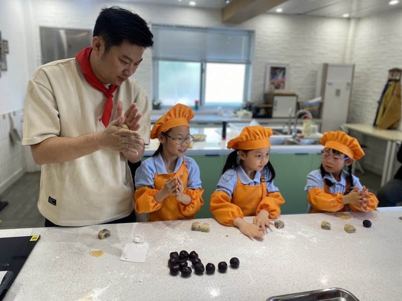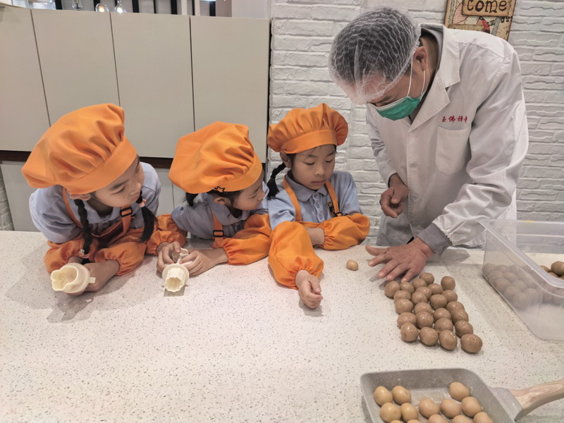 大廚爸爸帶著孩子們來到云廚房,教他們做香噴噴的美食。孩子們穿上圍裙,變成了“小小廚師”。學得有模有樣,揉面、搓面、壓制——特質的磨具印著WFL,可自豪啦,“外面買不到哦”。孩子們嘗著自己做的美食,臉上洋溢著滿滿的喜悅。