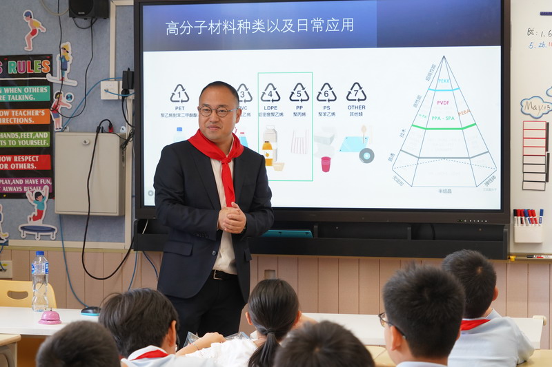 課堂上,陳爸爸化身“科學魔法師”,將充滿奧秘的“會變魔法的高分子材料”引入課堂。特別是3D打印環節,隨著打印機的運轉,材料層層堆疊,一件件精美的作品逐漸成型。同學們目不轉睛,完全沉浸其中,精彩的講解與神奇的展示,讓大家聽得如癡如醉,不舍得移開目光。