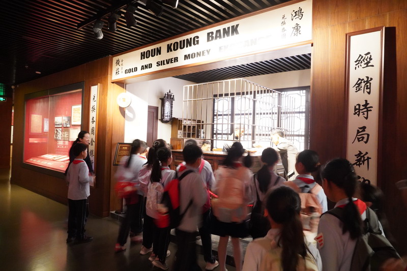 下午,同學們參觀了上海市銀行博物館,這是目前國內館藏最豐富,珍貴文物最多的金融行業博物館。同學們大致了解了“典當,存折,股票,兌換”等名詞,一窺百年民族金融的變遷和中國經濟的滄桑巨變。