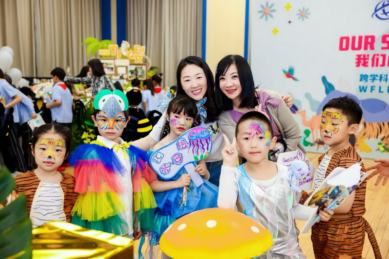 開學(xué)伊始,世外小學(xué)雙語一年級的同學(xué)們在多學(xué)科老師的指導(dǎo)下,進(jìn)行了野生動物的研究:他們自主選擇了雨林動物、海洋動物、極地動物和草原動物。探究課上,語文老師指導(dǎo)他們查找書籍、翻閱資料,發(fā)現(xiàn)野生動物身上的無數(shù)神奇。形體課上,舞蹈老師引導(dǎo)他們創(chuàng)編舞蹈,展現(xiàn)動物的野趣。科學(xué)課上,科學(xué)老師指導(dǎo)他們共同制作動物棲息地。人文課上,美術(shù)老師教會他們制作小報和動物相關(guān)展品。