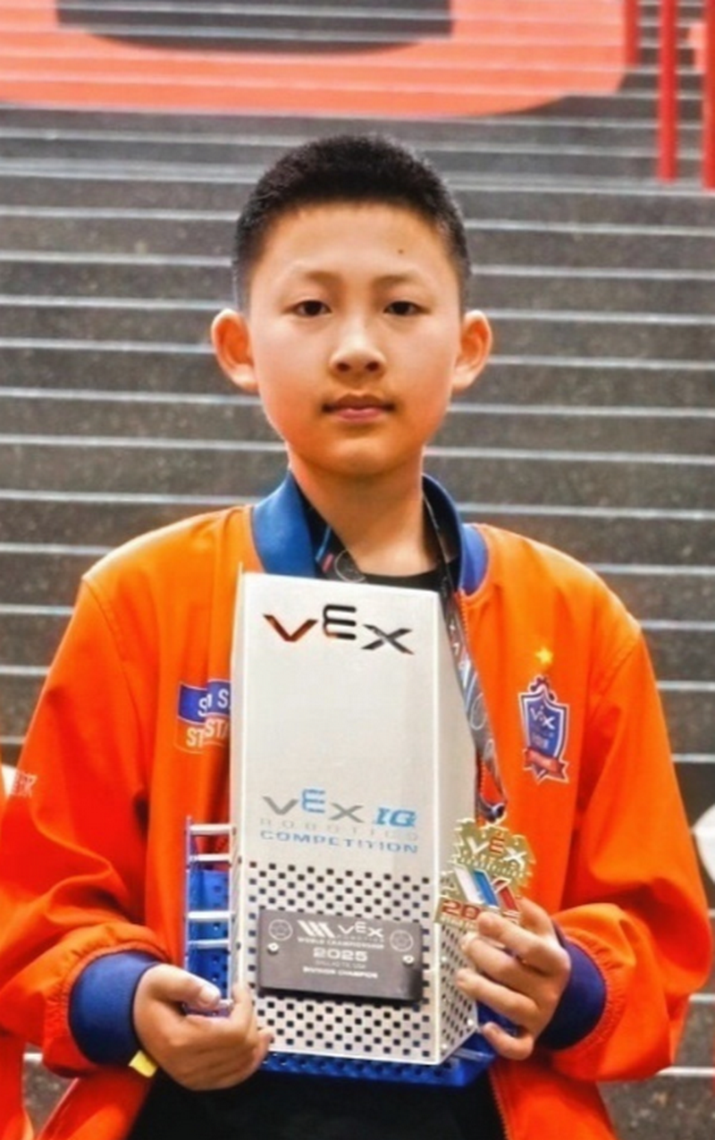 最近,在2025年VEX機器人世界錦標賽的全球舞臺上,五C班沈善同學與他的團隊并肩作戰,憑借出色的協作和穩定的發揮,不僅勇奪分區冠軍,更在全球總決賽中取得了第五名的驕人成績。在沈善眼中,機器人不是冷冰冰零件的組合,而是點燃心中夢想的火種,生動詮釋了熱愛的力量,演繹了家庭和學校幫助孩子將好奇心轉化為成長果實的過程。