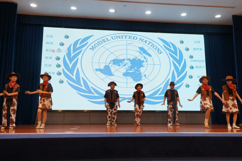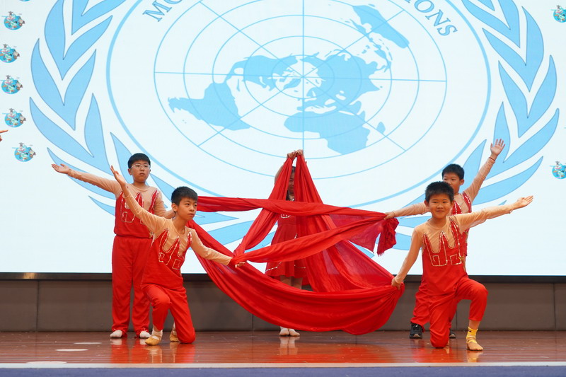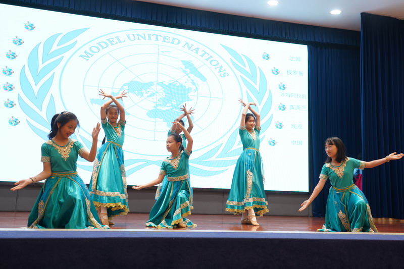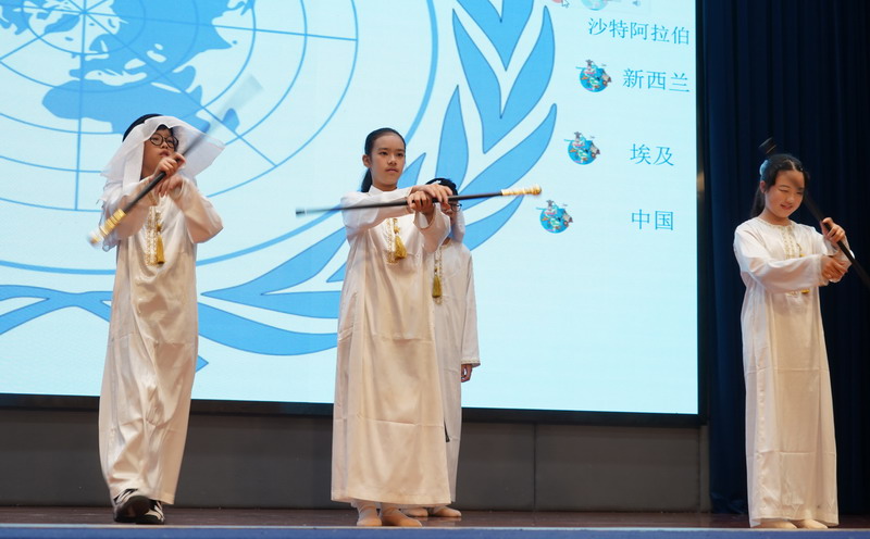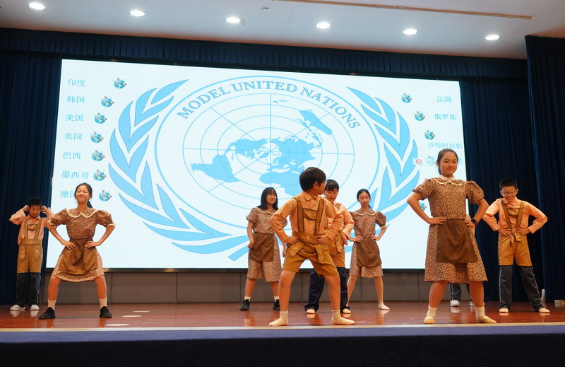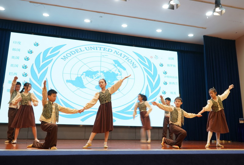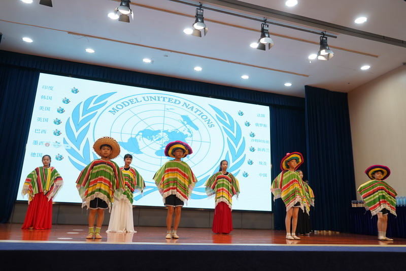 學生以“模聯國家”為單位,揮舞著象征多元與友誼的旗幟,昂首“March in”,瞬間點燃了全場的熱情。學生用自信的舞姿,詮釋著世界文明的斑斕交響。