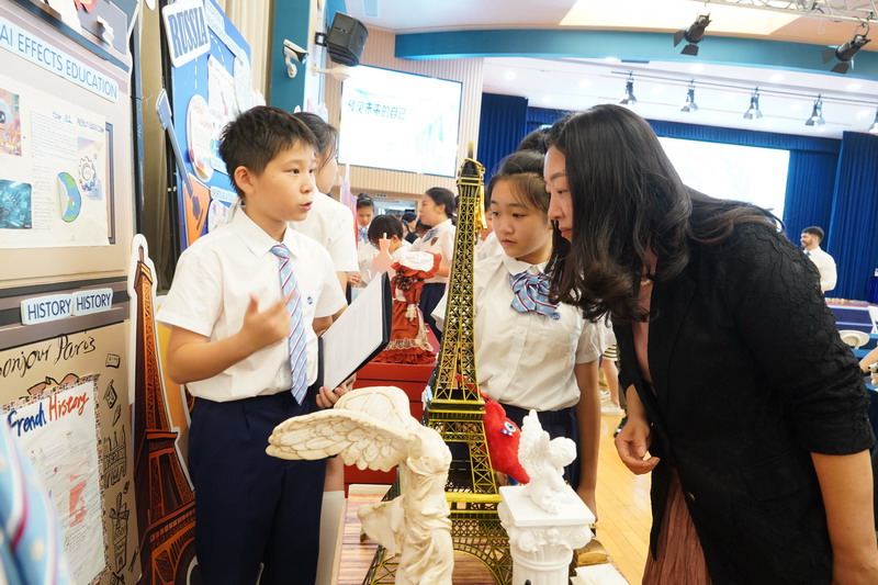 “We cherish all the happy and down moments happened in WFL.” 小主持人們的雙語講述,道出了五年的點滴珍藏。從課堂的專注求索到戶外的勇敢實踐,從模聯的智慧交鋒到對未來的層層挑戰,學生在畢業課程的熔爐中,淬煉了全球視野的廣度與責任擔當的厚度。畢業展臺前,家長們駐足聆聽,學生侃侃而談。那交匯的目光中,是知識的傳遞,更是智慧火花的碰撞與成長力量的無聲見證——欣慰、驕傲、感動,交織成最動人的畫面。