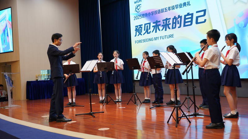 導語:六月的暖陽,溫柔地親吻著世外校園的每一片綠葉,也照亮了雙語部五年級學生“預見未來”的成長征途。2025年夏天,一場以“Foreseeing My Future 預見未來的自己”為主題的畢業盛典,在交織著不舍與蓬勃的期待中,深情鐫刻下了童年與青春交匯的璀璨華章。