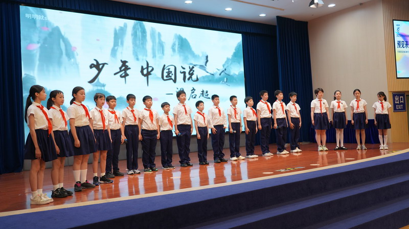 臺上臺下朗誦梁啟超先生的《少年中國說》震撼人心。少年們奮發圖強,將成為祖國的棟梁!表達著“鷹擊天風壯,鵬飛海浪春”的少年志向!