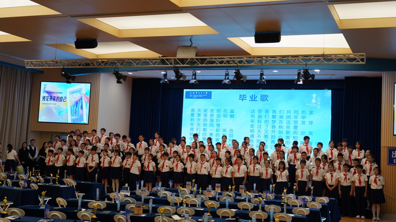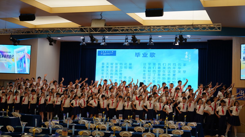 那本凝聚了五年汗水與榮光的畢業證書,是童年最厚重的勛章。動人的歌聲在禮堂回蕩,頌揚著青春的激揚與夢想的熾熱。當校長們和老師們鄭重地將證書遞到學生手中,每一組學生轉身、定格、微笑的瞬間,都被鏡頭永恒捕捉——這定格的不僅是此刻的笑顏,更是童年最珍貴的剪影,是邁向未來的起點。