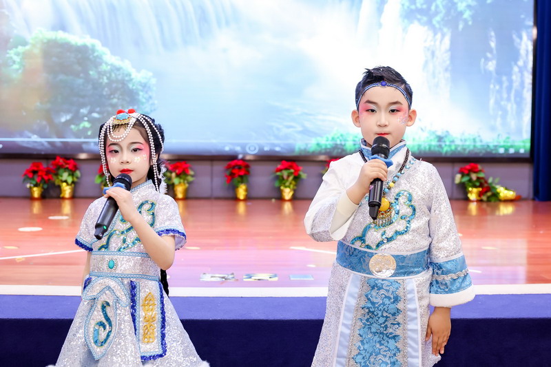 體育館的光影里,羌寨童謠的曲調(diào)悠悠漫開,學(xué)生身著特色服飾,以清亮的歌聲頌贊九寨溝的靈秀,將大美中國的山河盛景揉進婉轉(zhuǎn)的旋律里。