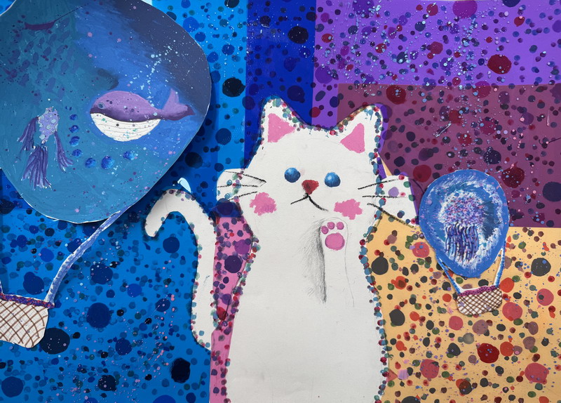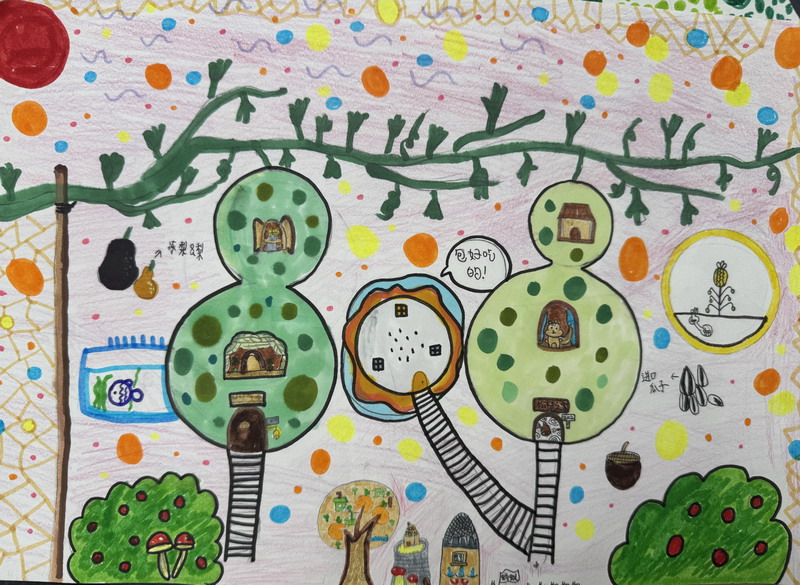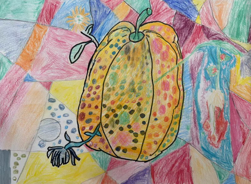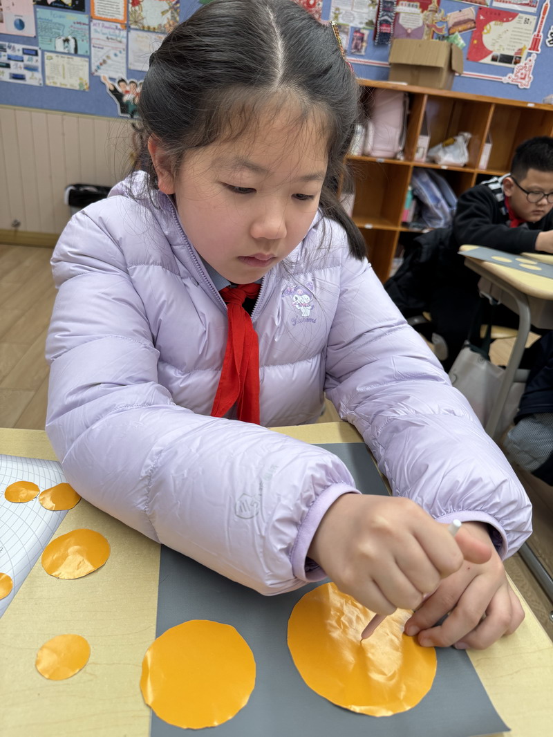 在隨后的美術課堂上,孩子們從觀察生活中的圓形物體,到嘗試用不同工具畫圓、剪圓、疊圓;從構思畫面結構,到反復調整色彩與節奏;每一幅作品,都是孩子們在課堂中一步步完成的學習成果。