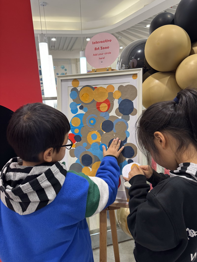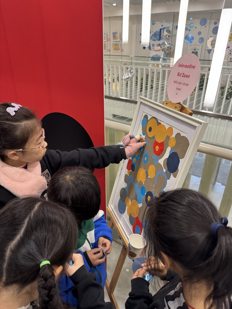 從參觀者到創作者,每一位走進展廳的孩子,都成為作品的一部分。展廳中的作品不再是“完成品”,而是一幅不斷被更新、被豐富的“成長型藝術作品”,更展現了“圓”的無限可能性。
