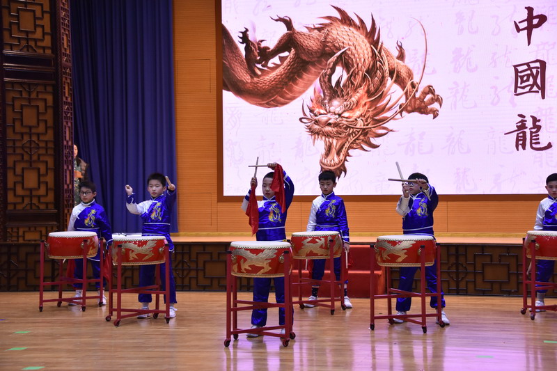 古語(yǔ)說"三人成虎",那20個(gè)小男孩呢?嗯,他們變成了一條龍,即將為我們獻(xiàn)上剛勁的中國(guó)功夫和舞龍。