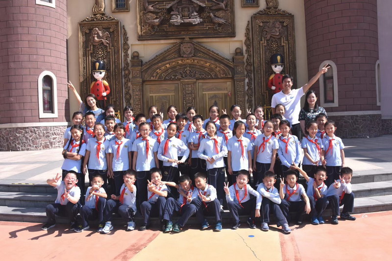 從校車上下來(lái)時(shí),每位小朋友無(wú)不驚嘆于樂園內(nèi)建筑的漂亮。穿過一片叢林,就來(lái)到了樂園的主體部分,初映眼簾的是一棟粉色的城堡,境內(nèi)外各個(gè)班級(jí)先是在城堡前合照留念。