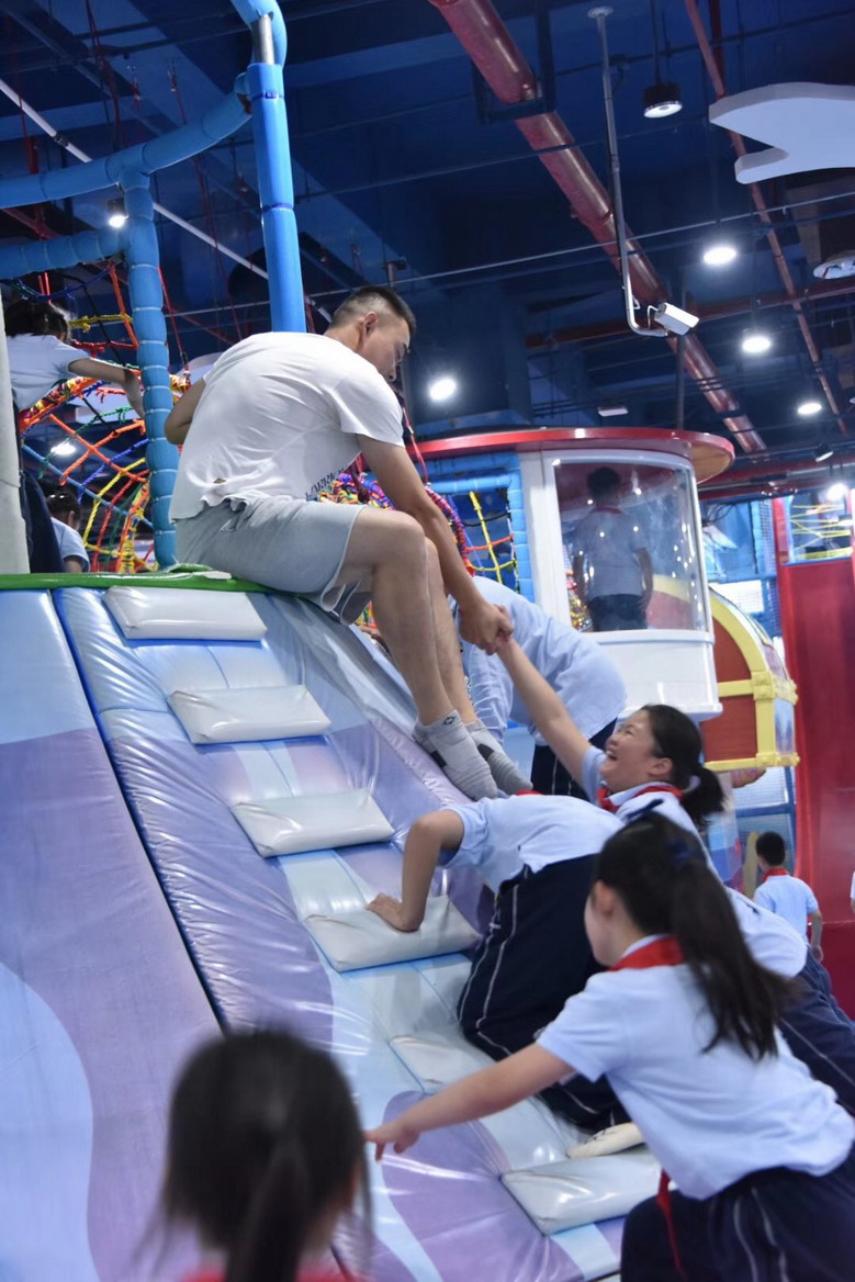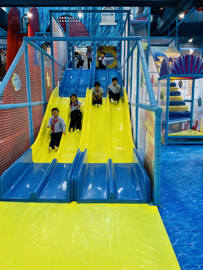 之后,喜歡冒險(xiǎn)刺激的小朋友來(lái)到九曲十八彎的“滑滑梯”項(xiàng)目。膽子大的小朋友爭(zhēng)先恐后爬到高處,有序地玩著項(xiàng)目。一次不夠,第二次,第三次……直到內(nèi)心的那份尋求征服的欲望得到滿足,才肯罷手。