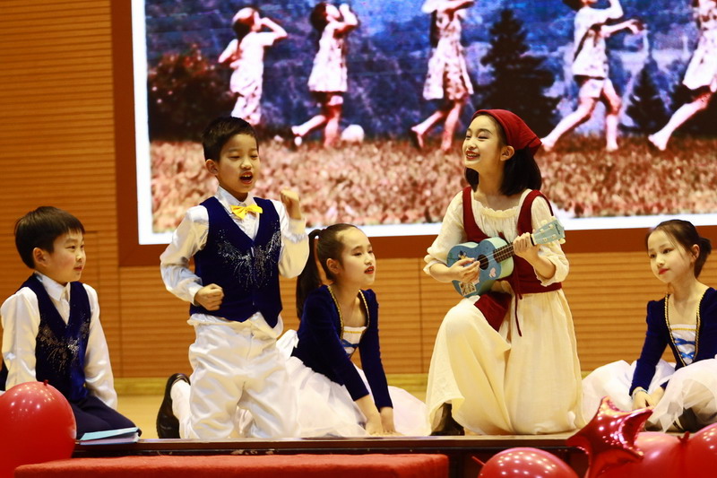 瞧,郊外的草地上,瑪利亞老師教給小朋友們Do-Re-Mi,帶領他們縱情歌唱,快樂游玩。這是孩子們自編自演的英語短劇《音樂之聲》。因為這一堂詼諧生動的音樂課,7個調皮苦悶的小朋友從此愛上了音樂和瑪利亞。亦如世外的老師,總是盡己所能給孩子們留下快樂的時光。