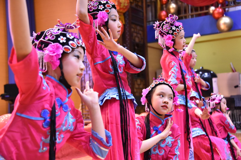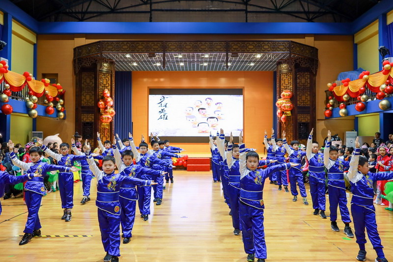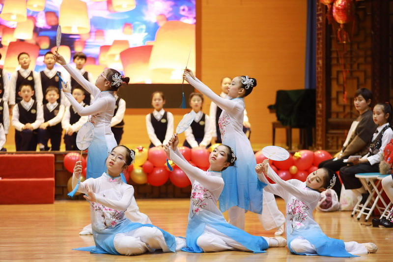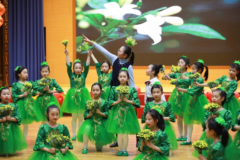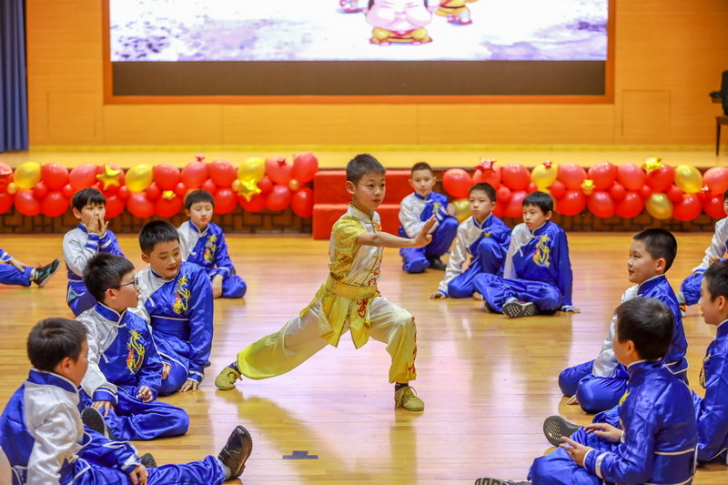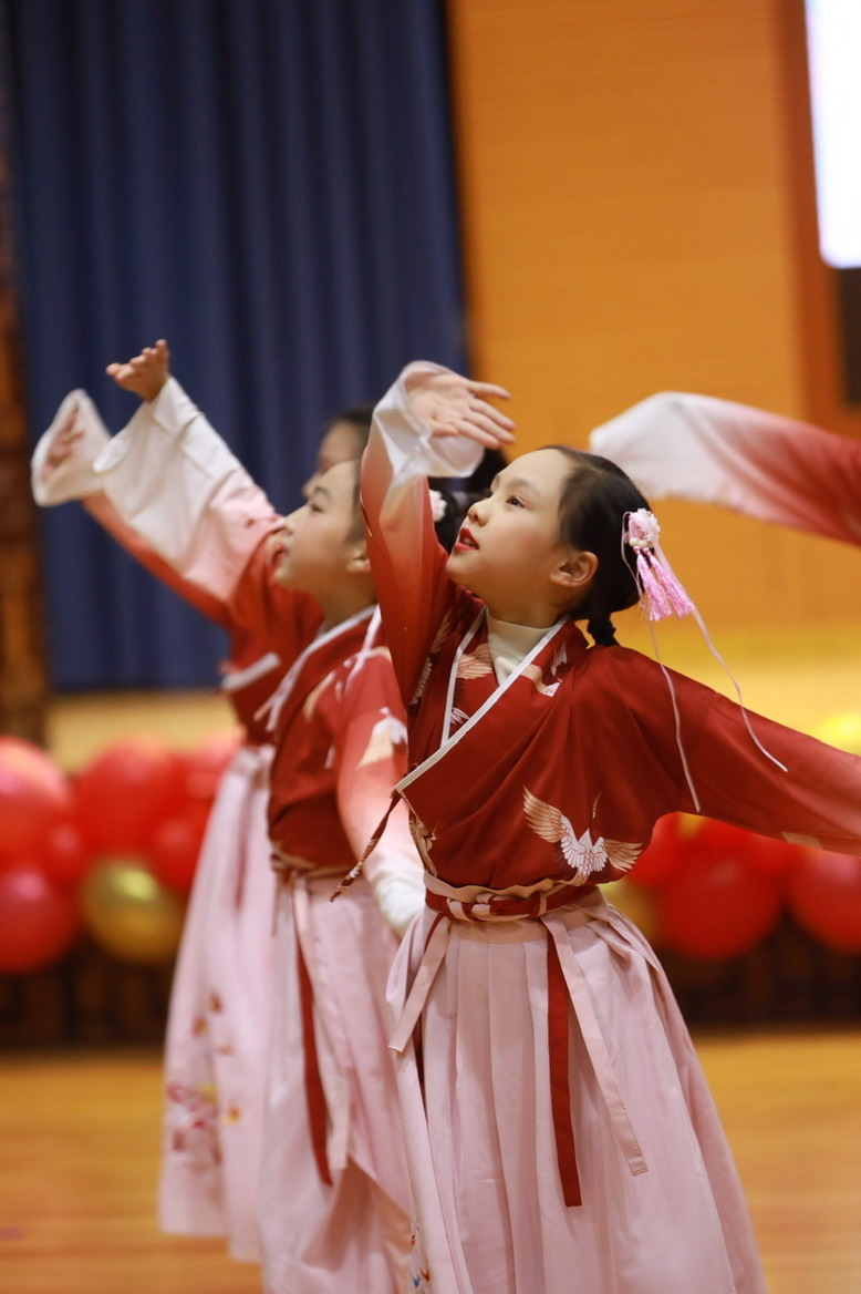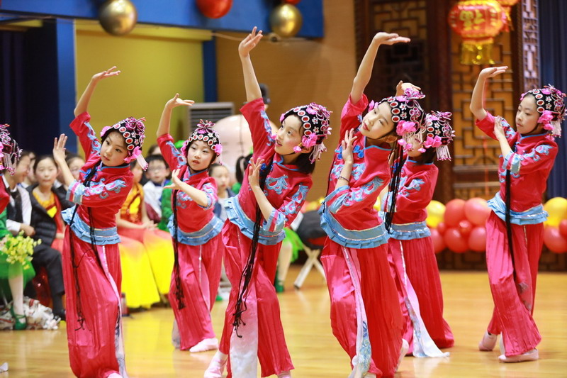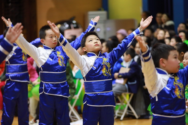 接著孩子們換上古裝,載歌載舞,表演了古詩文聯唱、武術操《少林英雄》、京劇《梨花頌》。這些節目都來源于學校豐富的課程與多彩的活動。