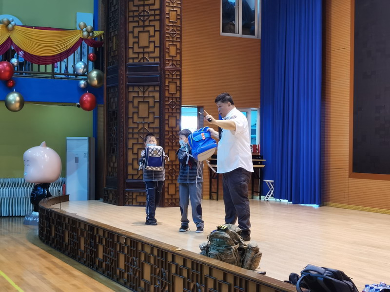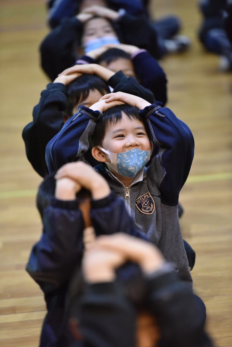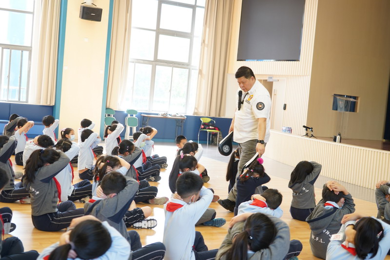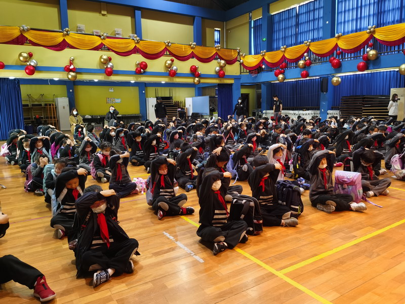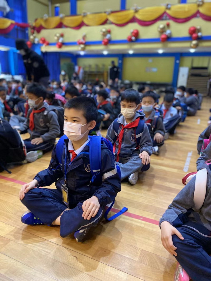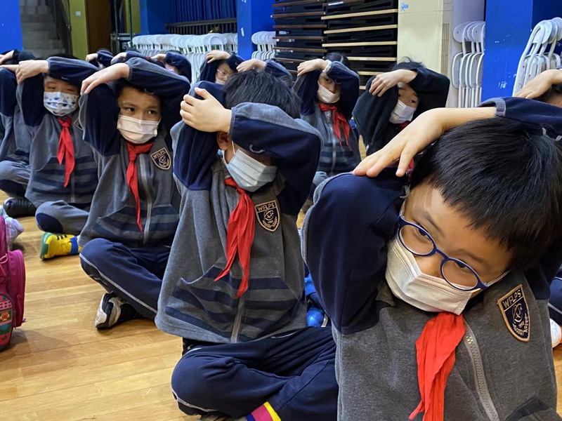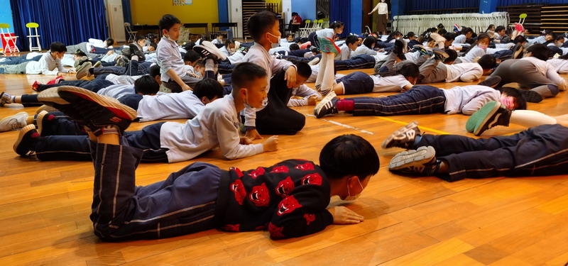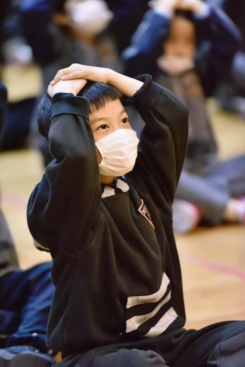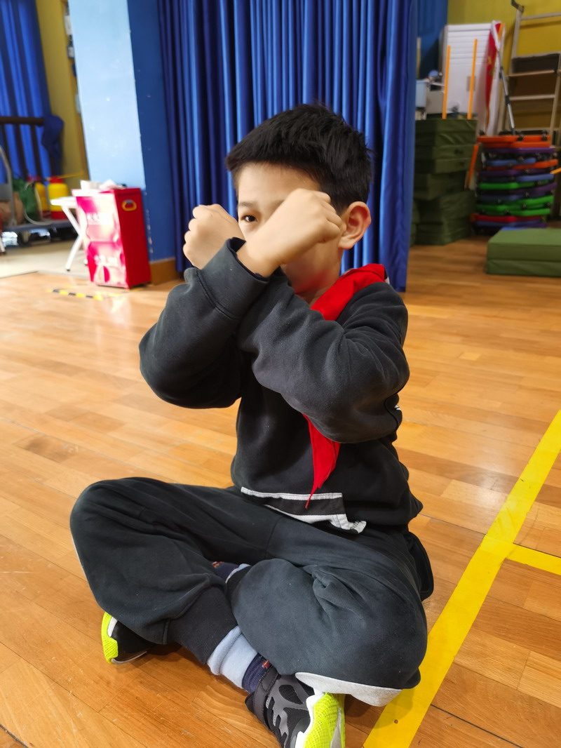 “SOS”、“Holding the head”、“sending signal”、“lie on the ground”these basic self-defence gesture, it’s the first time for Yr1 students to learn about it. They all draw attention to the lesson carefully!